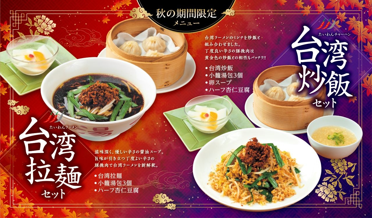 秋の期間限定メニュー 台湾拉麺・台湾炒飯 10月1日(水) 販売開始